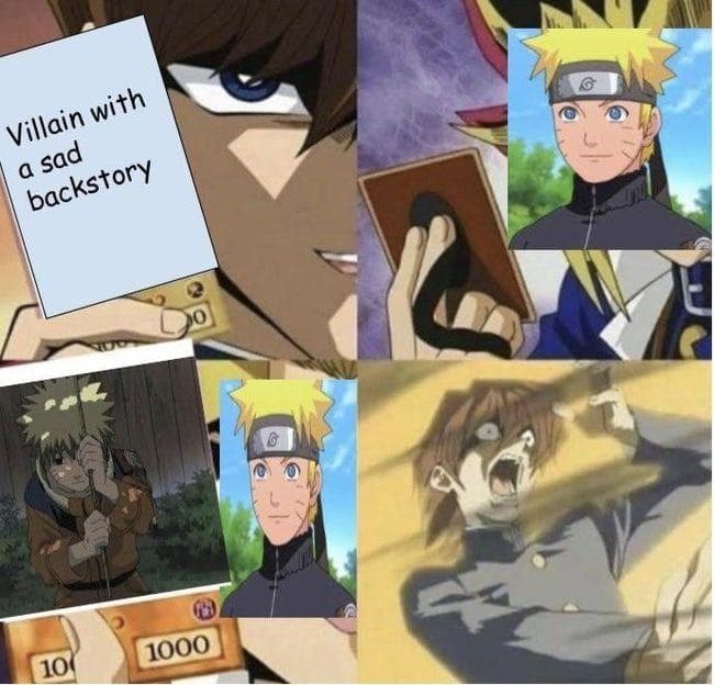 - ~Entering The Unknown~ : It's A Meme Lol, Naruto Has Been Calming Down Sociopaths And Depressed Villains Since Part 1 Of The Series And It Got To The Point Where Regardless Of How Evil Someone Is Naruto Can Make Someone Who's Done A Life Time Of Evil Change.